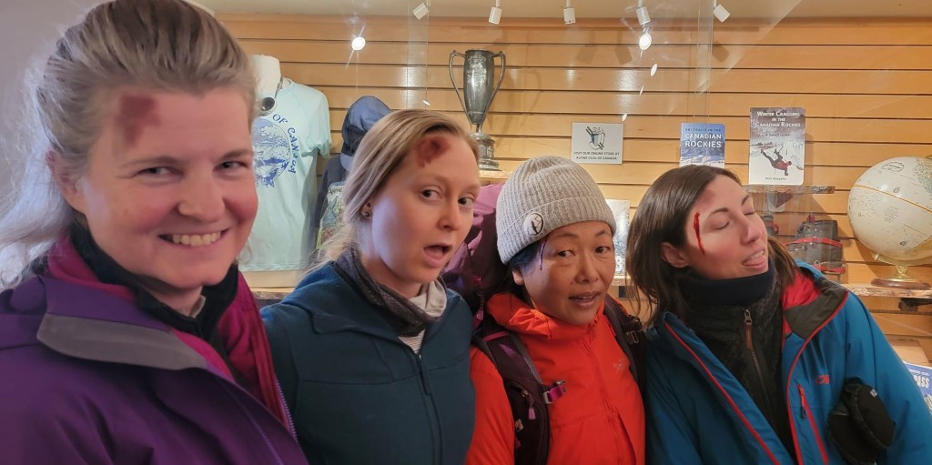 I’ve also dealt first hand with some scary situations. While doing a ski tour at Lake Louise resort, one of the guests broke her leg below the knee. Thankfully I had a team of Ski Friends with me, and I sent them down with the other guests to call for Ski Patrol. She was a screamer. I will never forget listening to her holler as the Pros loaded her up into the bucket. She screamed even louder when her ski boot came off…. Major kudos to those medics. They taught me to work through the screams. If something needs to be done, put cotton in your ears and do the work.