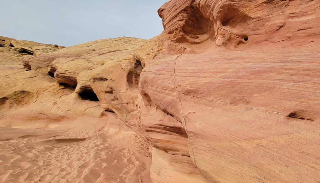 White Domes was very busy. I think seeing the old movie set was quite the draw. The parking lot was packed, and it was impossible to get close to the info signs at the start of the trail. We headed straight in, and were surprised by how steep the entrance is. There were quite a few elderly people struggling to get down to the valley below.