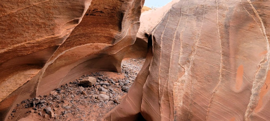 The swirls are intense! After being in Red Rock, I thought it was going to be more of the same solid red. I was SO shocked as this was our first real trail here. Who knew? 🙂