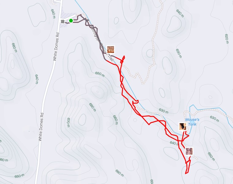 This is a very simple there and back trail. We found some petroglyphs as well.