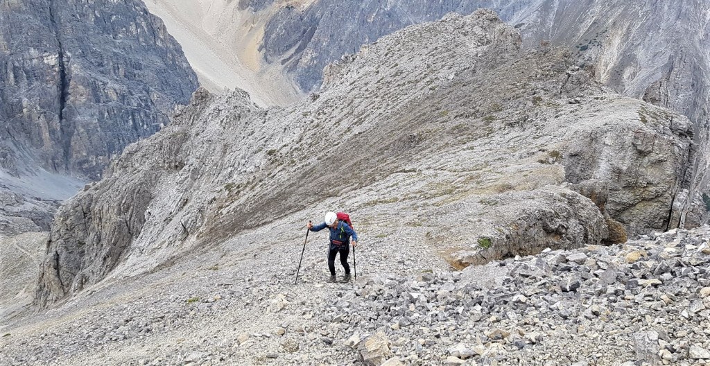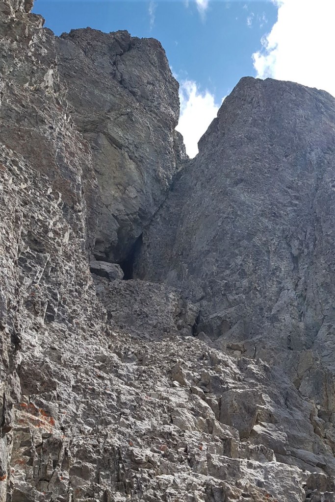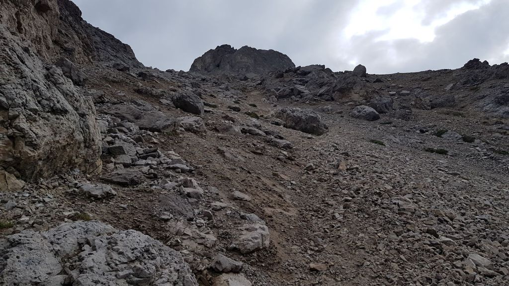 The trail angled to gain the top of the ridge. We followed that until we came to the scree section, next to the rock wall. Here, we stayed far left, and kept as close to the rock as possible. For the descent, we came down the middle of the scree. The ascent was a bit of a grind, but it didn’t last forever.