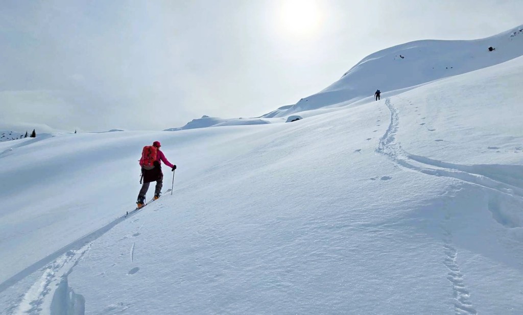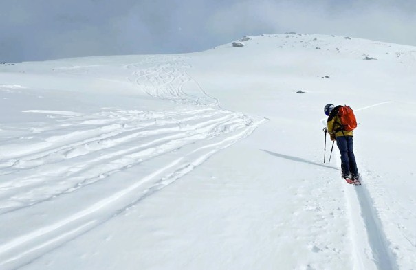 John skinning up towards Paradise Ridge. Photo credit: Lynn Martel.