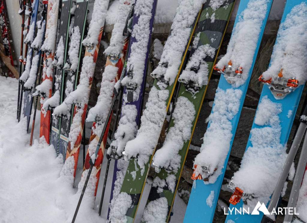 It is always a welcome sight to see your skis covered with snow in the morning, and it’s always a pleasure to travel with a professional photographer! Photo credit: Lynn Martel.