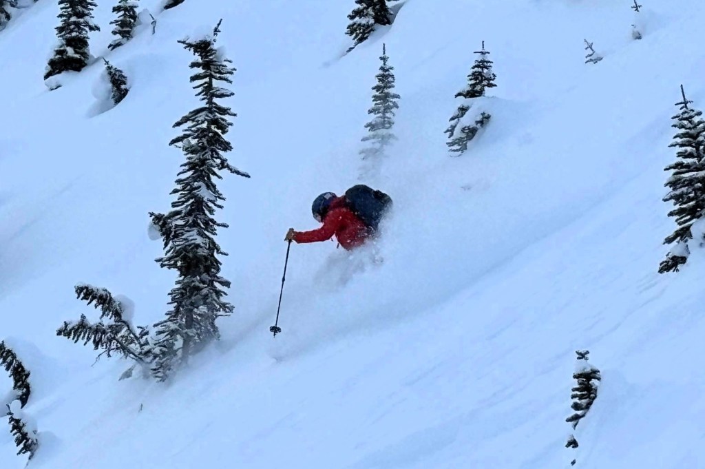 While it’s been a very difficult snow year for the Canadian Rockies, I’ve been SO lucky with my lodge-based ski weeks. It was looking very grim as we flew into Meadow Lodge on Friday. It was a very low snow pack, with lots of unskiable sun-baked slopes. The previous group were sequestered to north facing terrain only.