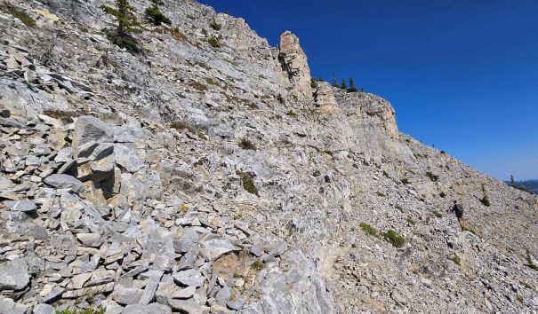 The East Peak of Mount Burns is a great summit. Unlike most of the scrambles in the area, this one has almost zero approach. What it lacks in approach though, it makes up for in a super long ridge to the summit. The false summit is a bit of a trial. The route after that is fun, with good route finding. The summit block is as hard as you want it to be, with a scree by-pass if desired.