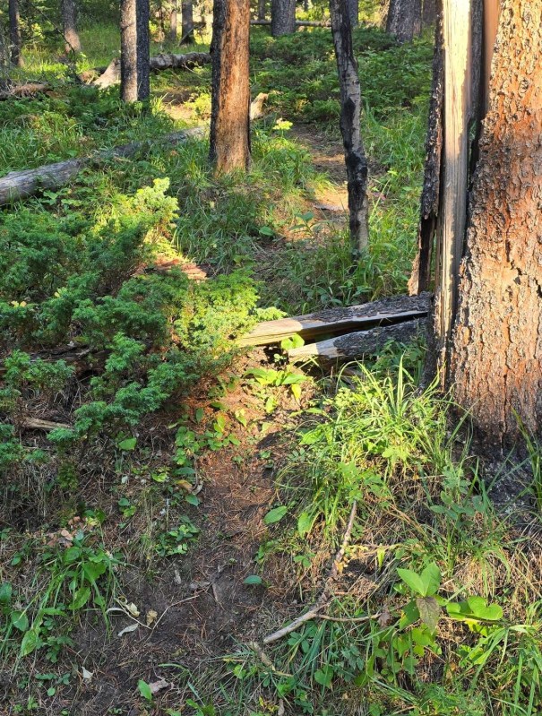 Once we were off the forest ridge and onto the main trail, we took a short cut through the trees to cut off the switchback. This wasn’t too bad, except it’s a bit swampy and we made some mosquitoes very happy.