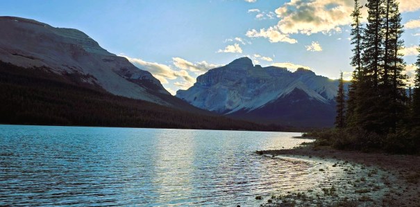 After dinner, Erin and I walked the lake shore to the west. What a gorgeous lake. It’s way bigger than I thought. This gave us a great view to our trail the next day – the valley between Flattop and Le Grand Brazeau.