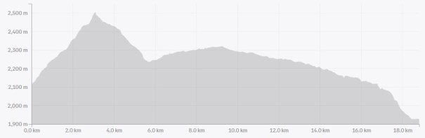 Distance to Jonas Shoulder was 3.1 km. Hiking time was 1 hour, with most of the elevation gain for the day, so around 550 m.