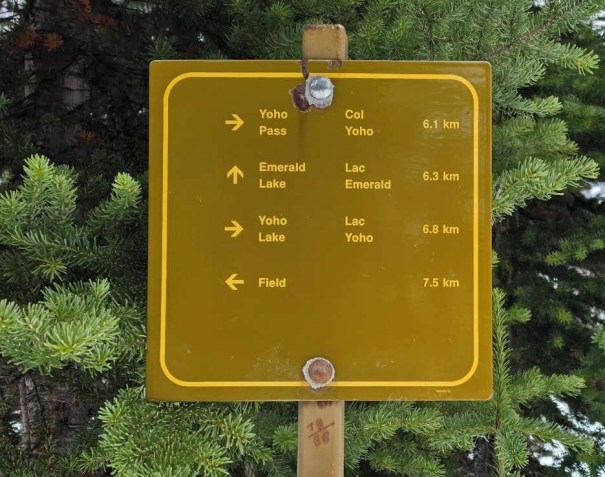 We parked at the Visitor’s Centre in Field, but there is a real trail head parking lot on the opposite side of the highway. Look for the unmarked lane on the north side of Highway 1, just east of the Field street lights. From the Visitor’s Centre, we crossed the highway, and picked up the trail immediately.