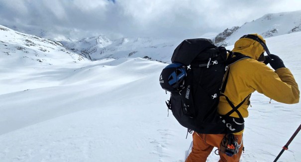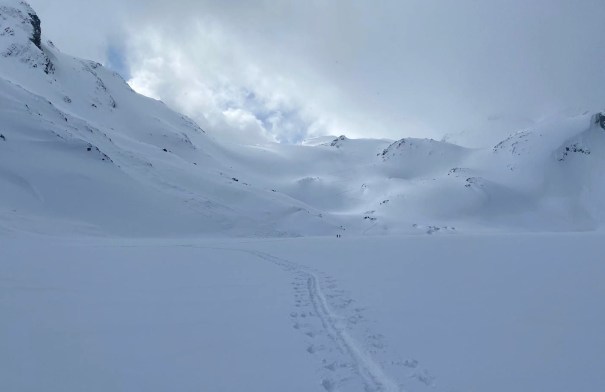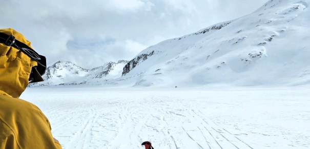 Conditions were not ideal. When organizing a trip like this, we book the huts, book the flights, and take time off work weeks in advance. Then pray we have a good weather window. Various reports showed light winds. Lies! Day One was constant high winds, with gusts that almost knocked me and my big pack over. I had to hold on tight several times. Doing a big ski traverse in high winds is exhausting, and stopping is horrible because the wind sucks out the heat in a few seconds.