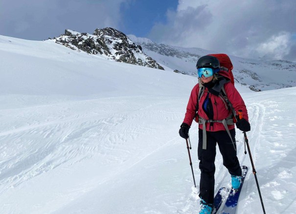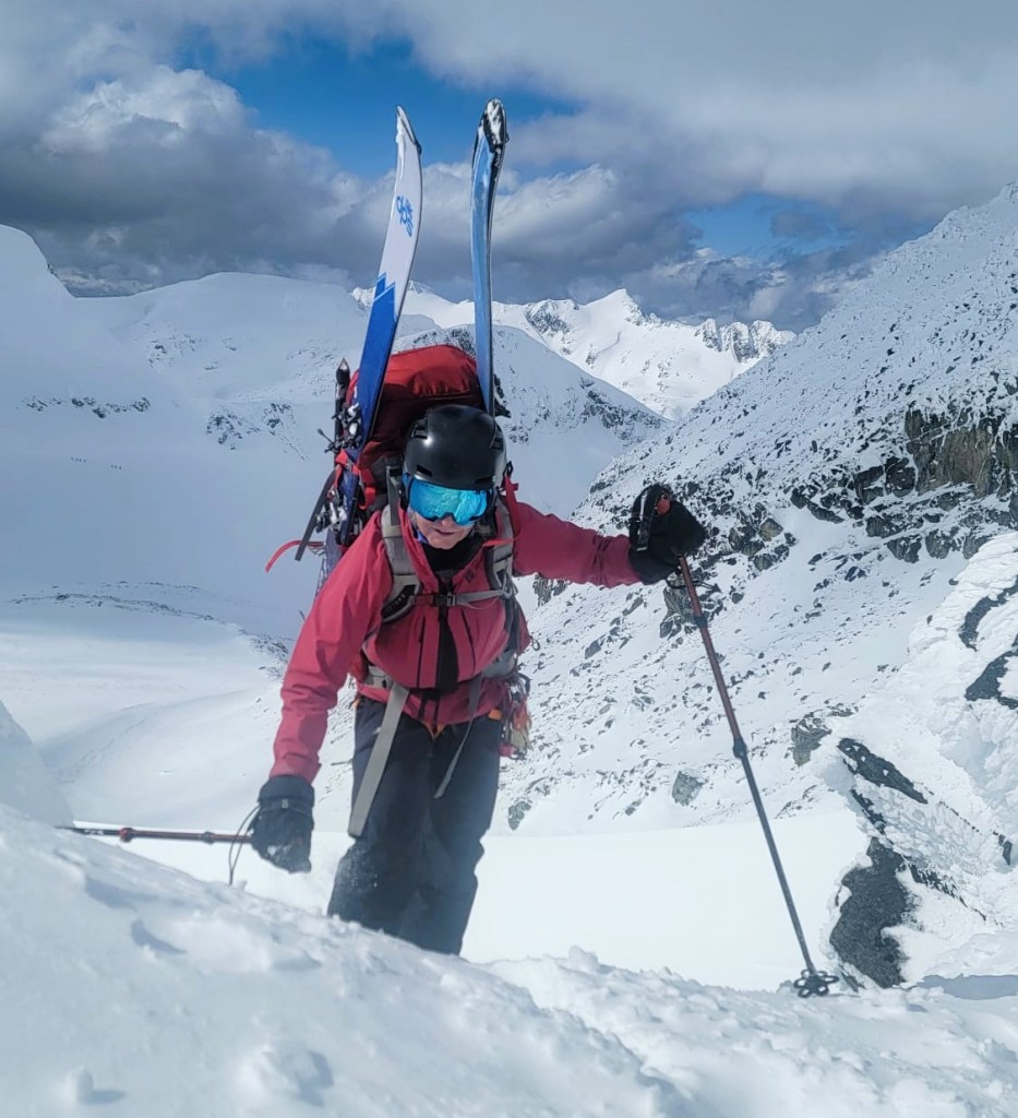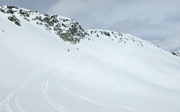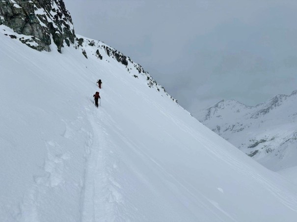While we ‘only’ gained 740 m, it was the hardest gains for the two days. We were now going up the steepest slopes that we skied down.