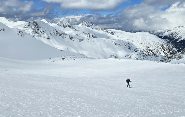 The Spearhead is a long, horseshoe shaped traverse that starts at the Blackcomb Glacier, and ends back at Whistler. It passes intense scenery, and numerous mountains and glaciers. It is truly a wondrous traverse.