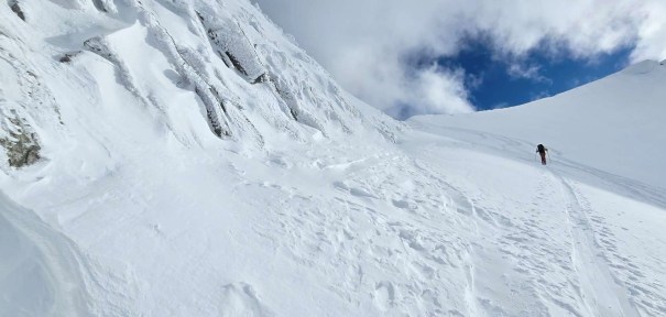 This shows the wind and snow blasted rock and snow. Getting very steep here, but again, photos don’t do it justice.