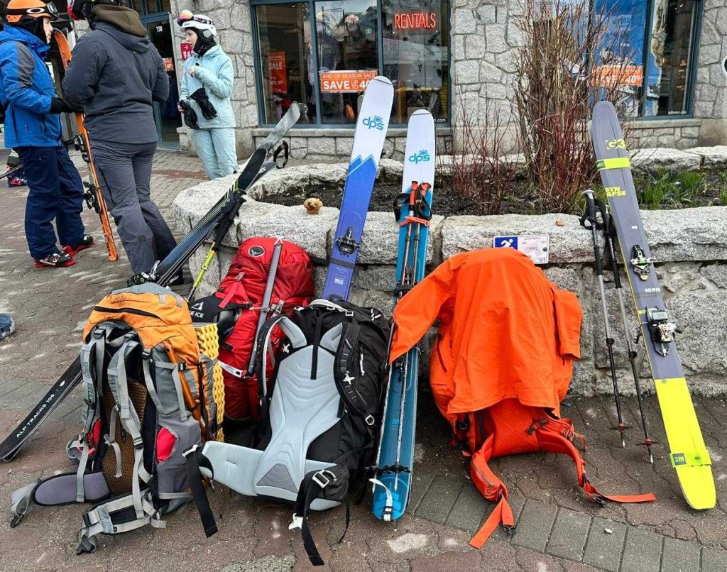 It felt so odd walking around with our giant packs at the Whistler Village base. Usually we start a big ski traverse from the middle of nowhere. Photo: Brian Liu.